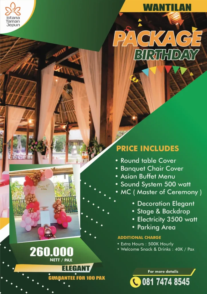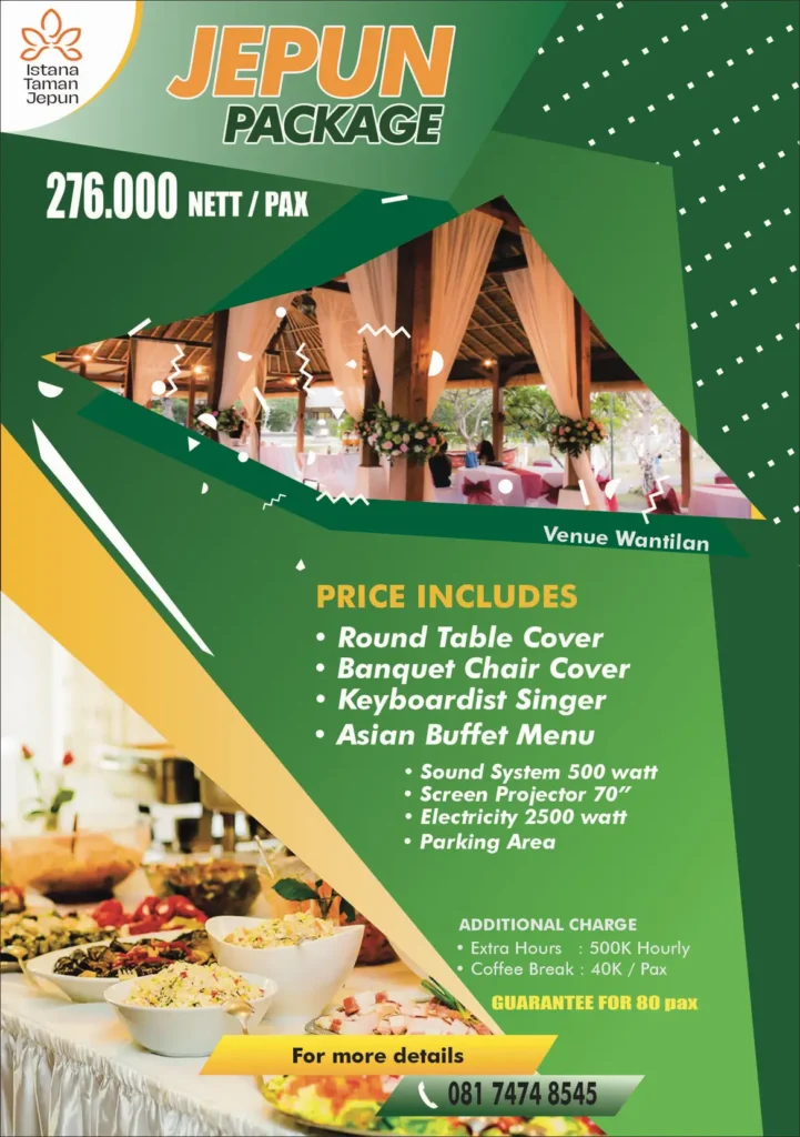 Kami siap memenuhi berbagai kebutuhan acara Anda, dari pernikahan, pesta ulang tahun, acara perusahaan, hingga acara keluarga, dengan harga yang kompetitif dan bersaing.